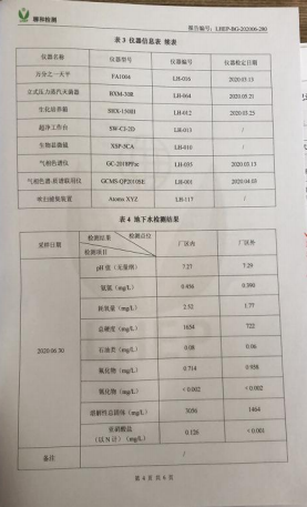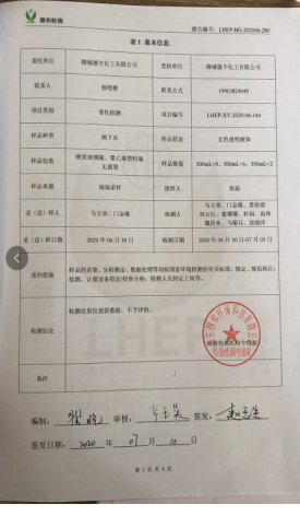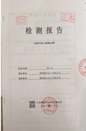 聊城德豐化工有限公司地下水檢測(cè)報(bào)告公示
