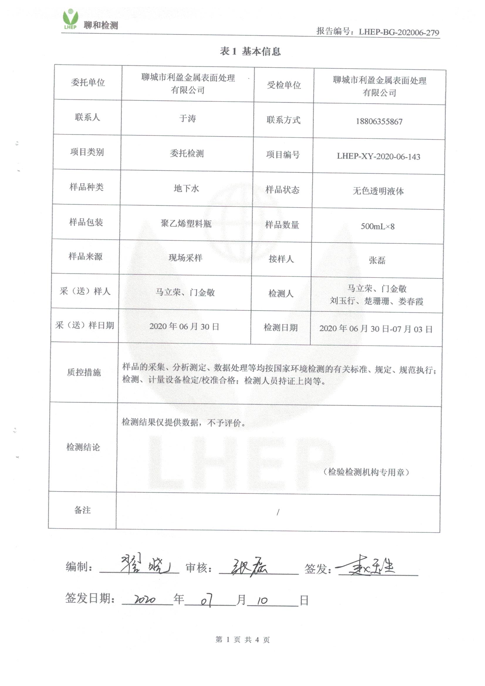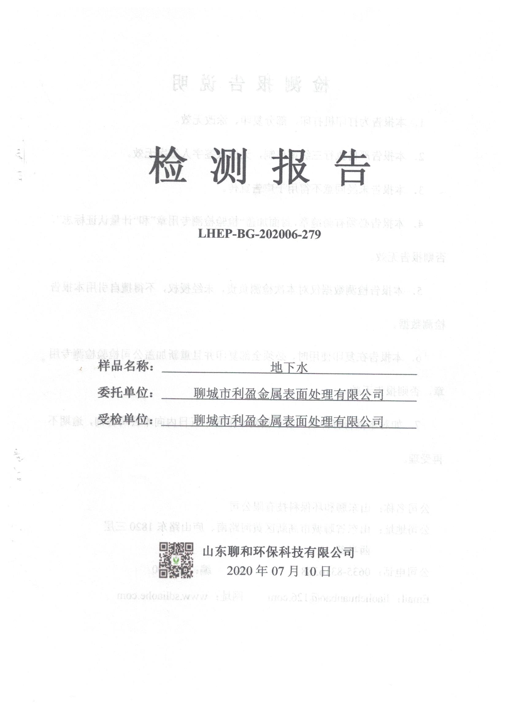 聊城市利盈金屬表面處理有限公司例行檢測報(bào)告20200710