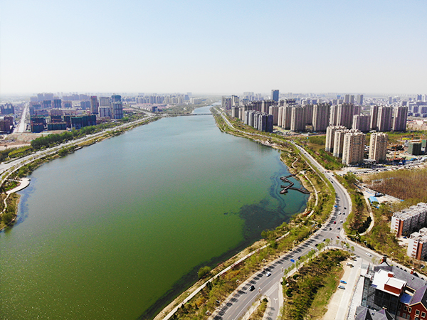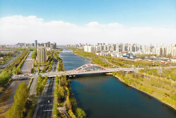 寬闊的徒駭河面,聳立的高樓。