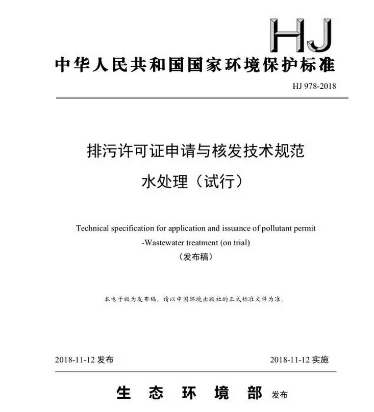 《排污許可證申請(qǐng)與核發(fā)技術(shù)規(guī)范 水處理(試行)》(HJ 978-2018)。