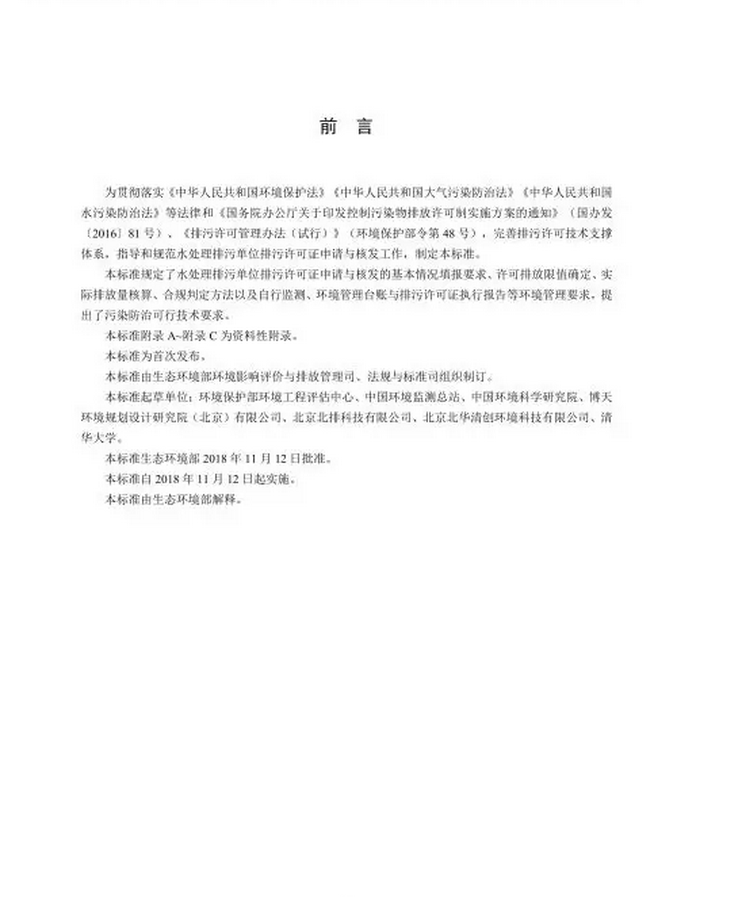 為貫徹落實(shí)《中華人民共和國(guó)環(huán)境保護(hù)法》《中華人民共和國(guó)大氣污染防治法》《中華人民共和國(guó)水污染防治法》等法律法規(guī)、《國(guó)務(wù)院辦公廳關(guān)于印發(fā)控制污染物排放許可制實(shí)施方案的通知》(國(guó)辦發(fā)〔2016〕81號(hào))和《排污許可管理辦法(試行)》(環(huán)境保護(hù)部令第48號(hào)),完善排污許可技術(shù)支撐體系,指導(dǎo)和規(guī)范污水處理廠(chǎng)排污許可證申請(qǐng)與核發(fā)工作,現(xiàn)批準(zhǔn)《排污許可證申請(qǐng)與核發(fā)技術(shù)規(guī)范 水處理(試行)》為國(guó)家環(huán)境保護(hù)標(biāo)準(zhǔn),并予發(fā)布。
